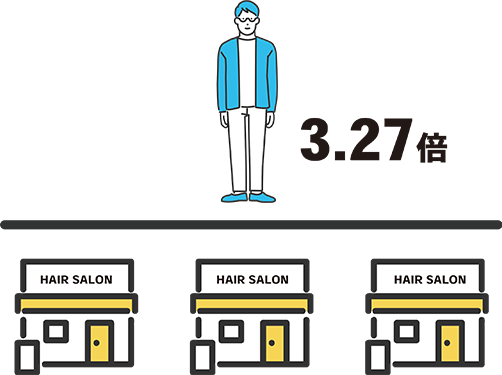 「生活衛生サービス」の区分には理容師の他、クリーニング、浴場なども職業も含まれるため、上記数字が正確とは言えませんが、どの美容室も人手不足という話をよく耳にしますし、全国の美容室の数はコンビニ5万件の約5 倍の約25 万件(2020 年時点)と圧倒的な事業者数のため業界全体が人材不足であることご納得いただけることと思います。